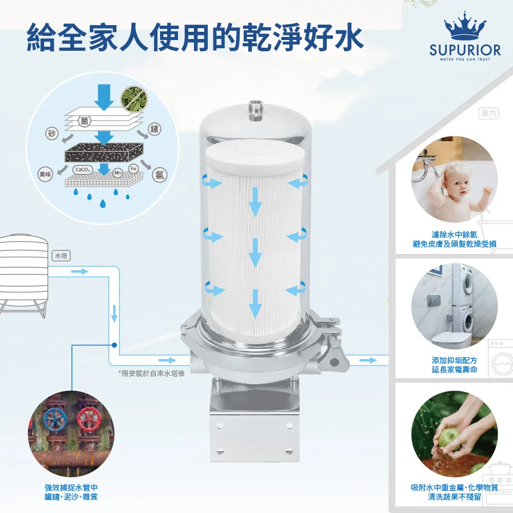 ※安裝前請先確認水壓是否符合機器工作壓力,如進水壓過低請安裝加壓馬達;如進水壓超過使用限制,請加裝減壓閥及水錘吸收器,以免水錘效應造成設備損壞而發生漏水。